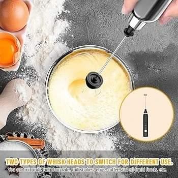 TWO STAINLESS STEEL WHISKS: Equipped with two high-quality stainless steel whisks, cleaning will be a snap just by placing the rod under the running water. The ballon whisk can be used as an egg beater to whip eggs or heavy cream; the milk whisk is perfect for making cappuccino, latte, bulletproof coffee, hot chocolate. According to the size of the container, you can choose whisk or ballon whisk to achieve a better milk frother effect.